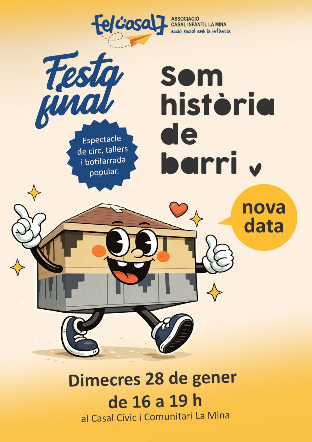 Davant l’inici imminent de les obres de reforma del Casal Cívic i Comunitari de La Mina, aquest dimecres a la tarda l’Associació Casal Infantil La Mina organitza una festa final de comiat a l’actual edifici. Ells van ser un dels primers a entrar a l’edifici el 1987 quan es va inaugurar, i en seran els últims a sortir amb encara la incògnita de les condicions amb què podran tornar un cop s’acabi la rehabilitació prevista.