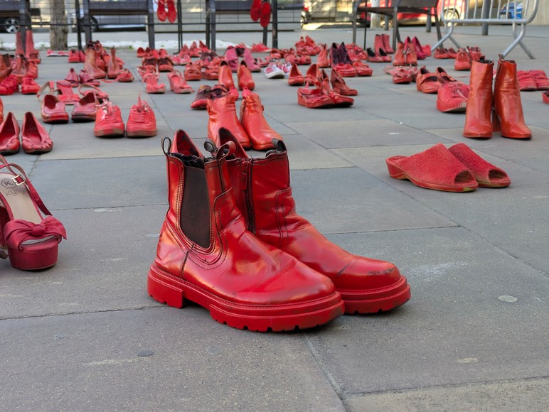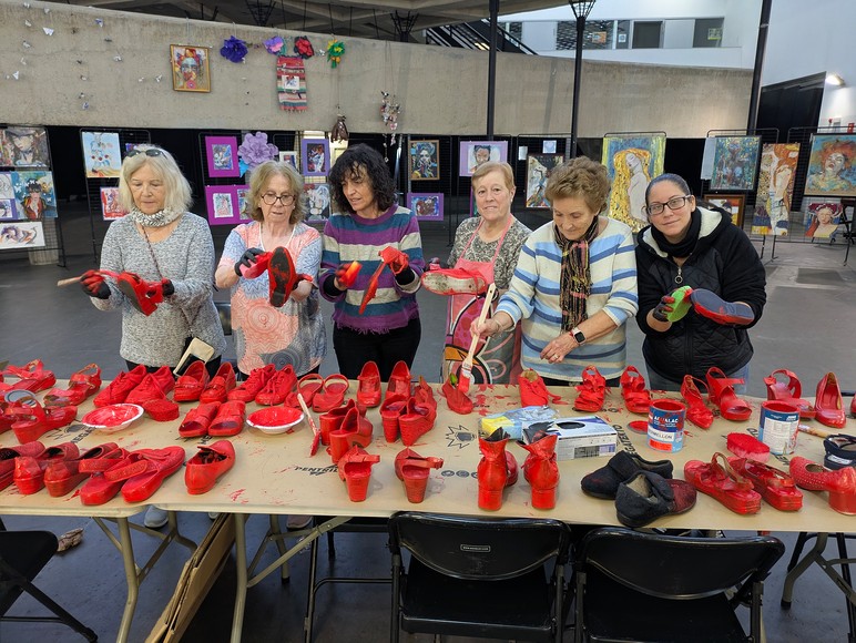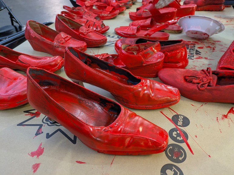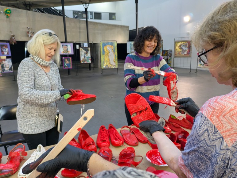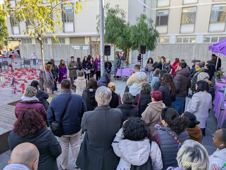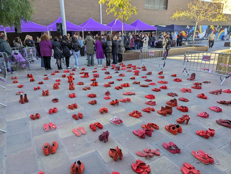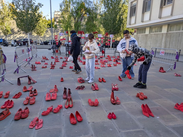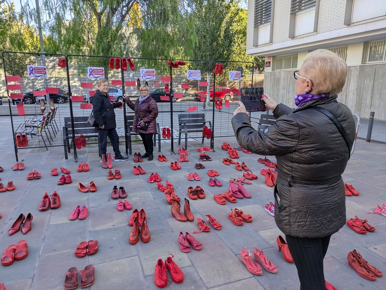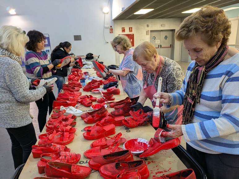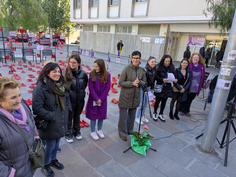 També aquest va ser l’escenari de la instal·lació de les “Sabates Vermelles’, que els mateixos grups de dones i els centres educatius es van encarregar de pintar en dies anteriors. Aquesta proposta, inspirada en l’obra ‘Zapatos Rojos’ de l’artista mexicana Elina Chauvet, és una intervenció simbòlica que reflecteix els feminicidis i les violències contra les dones.