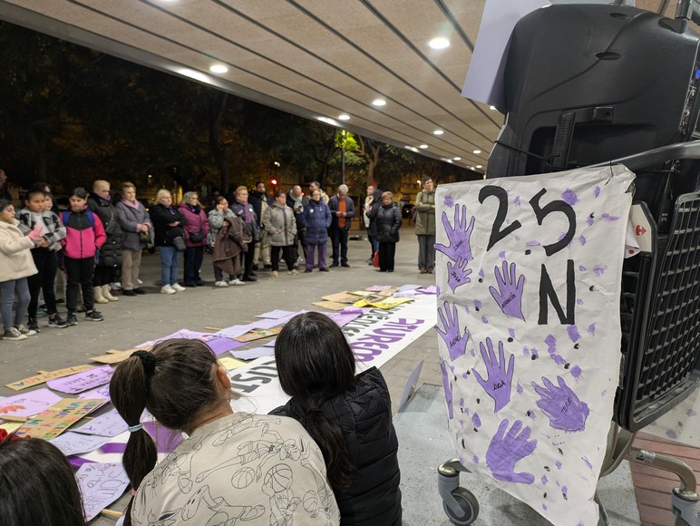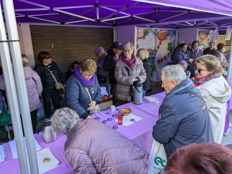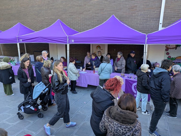 En una jornada de reivindicació tan destacada com el 25N, les veïnes del barri es van trobar de nou als carrers de La Mina per reclamar la fi de les violències envers les dones. El matí va servir per reunir i visibilitzar els diferents grups de dones del territori a la plaça Àngels Rosell on, tot i el fred intens, van poder presentar les seves propostes sota les carpes de color lila abans de donar pas a l’acte més institucional i la lectura del manifest.