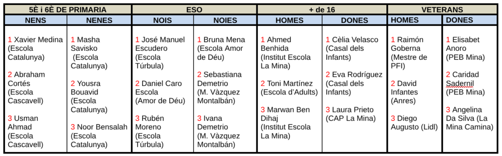 Guanyadores de la 6a edició de la Milla de La Mina: