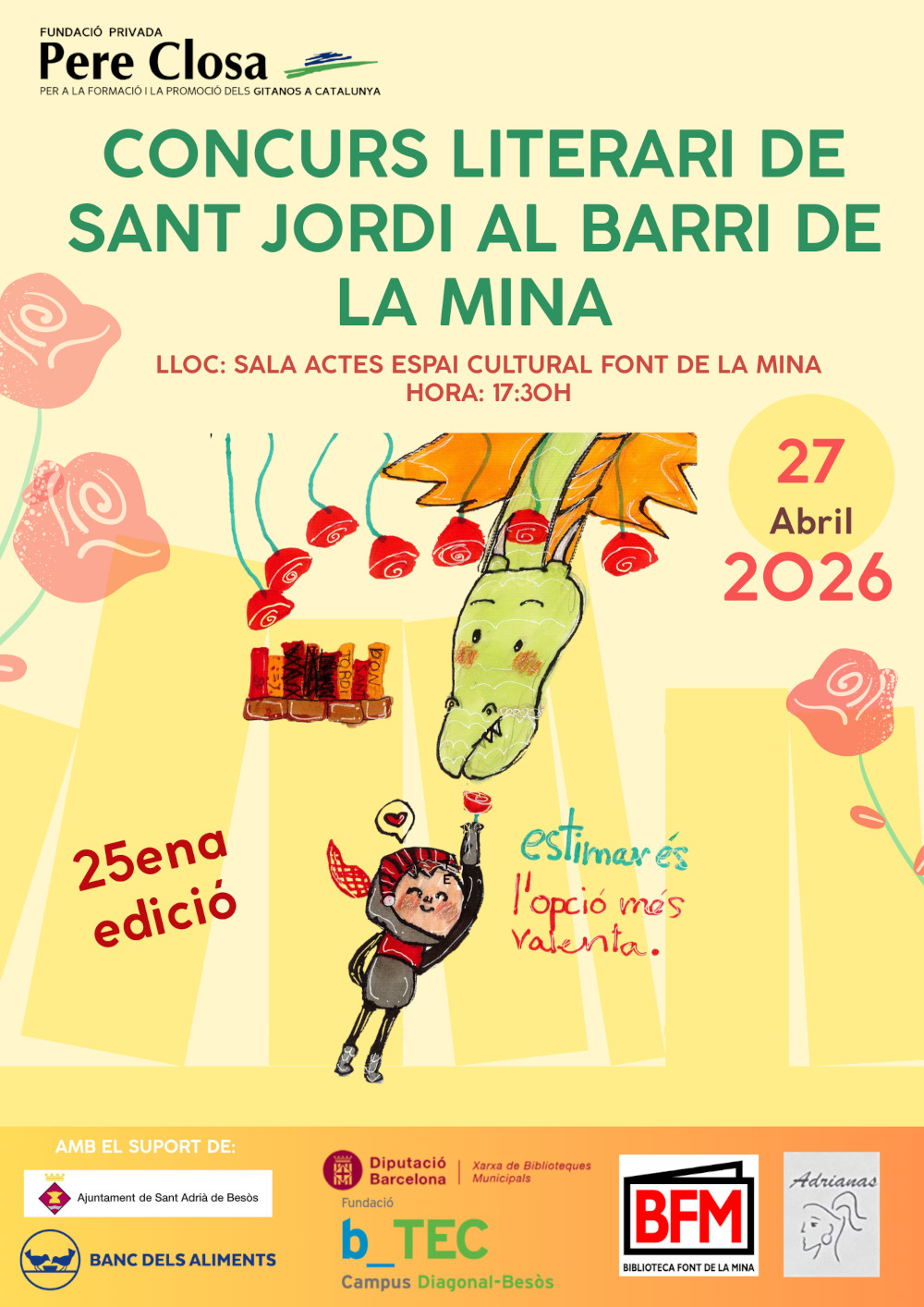 La Fundació Pere Closa torna a fer un any més una crida a la participació i a la implicació de tota la comunitat educativa del barri de La Mina perquè Sant Jordi es torni a viure des de dins del territori.
